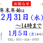 年末は12月31日(水)~14時まで 年始は1月5日(月)からです。 よろしくお願いいたします♡ …